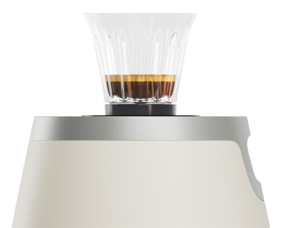 Desenhados com a mestria do Philippe Starck, os pires, copos para expresso e copos para bebidas longas da coleção aliam a ergonomia e um design sofisticado ao ecossistema de extração RISE, em que os copos e a máquina contribuem para a injeção do café pela base do copo.